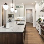 Los azules acuáticos, verdes eucalipto y lavandas suaves también combinan muy bien con esos tonos de madera más claros y las superficies blancas y nítidas.